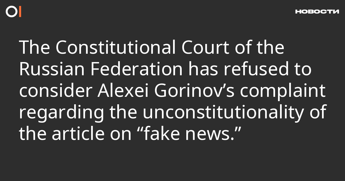 The Constitutional Court of Russia has issued a refusal ruling on the complaint of former municipal deputy Alexey Gorinov, who was sentenced to seven years in prison for alleged dissemination of “fake news” about the Russian army (paras. “a,” “b,” and “d” of part 2, article 207.3 of the Criminal Code) and to three years for alleged justification of terrorism (part 1, article 205.2 of the Criminal Code). This was reported by the Memorial Human Rights Centre.