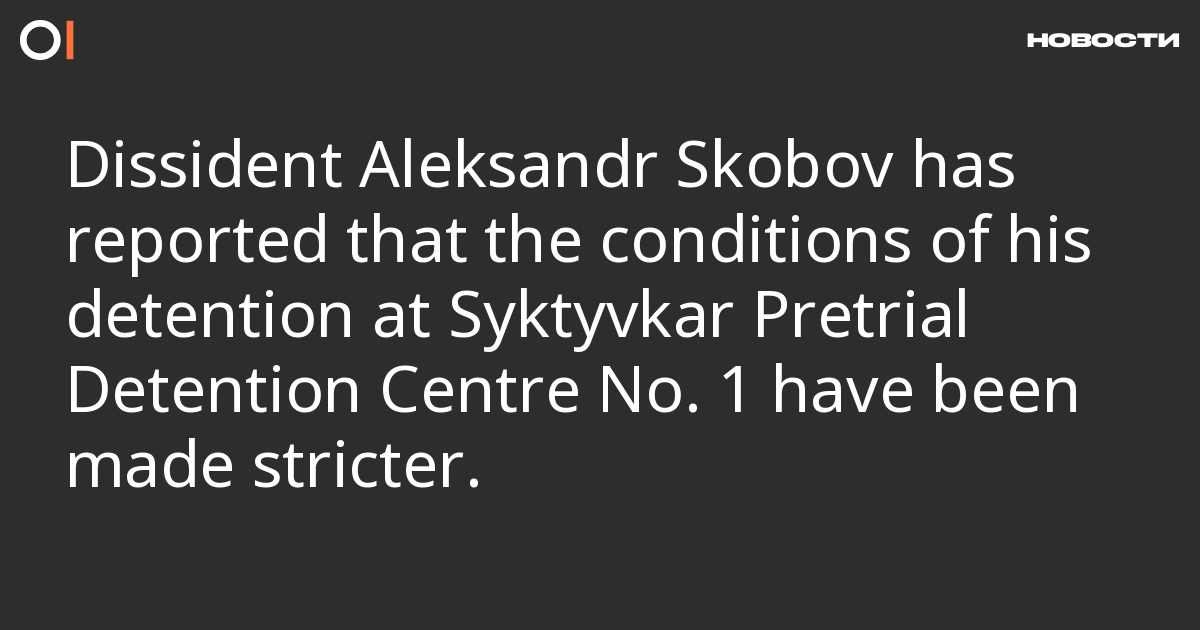 Aleksandr Skobov, a 67-year-old dissident from St Petersburg sentenced to 16 years in prison, has said that since April the conditions of his detention at Syktyvkar Pretrial Detention Centre No. 1 have been made stricter. His wife Olga Shcheglova, who visited him on 17 June, shared his words today, published by Skobov’s support group.
