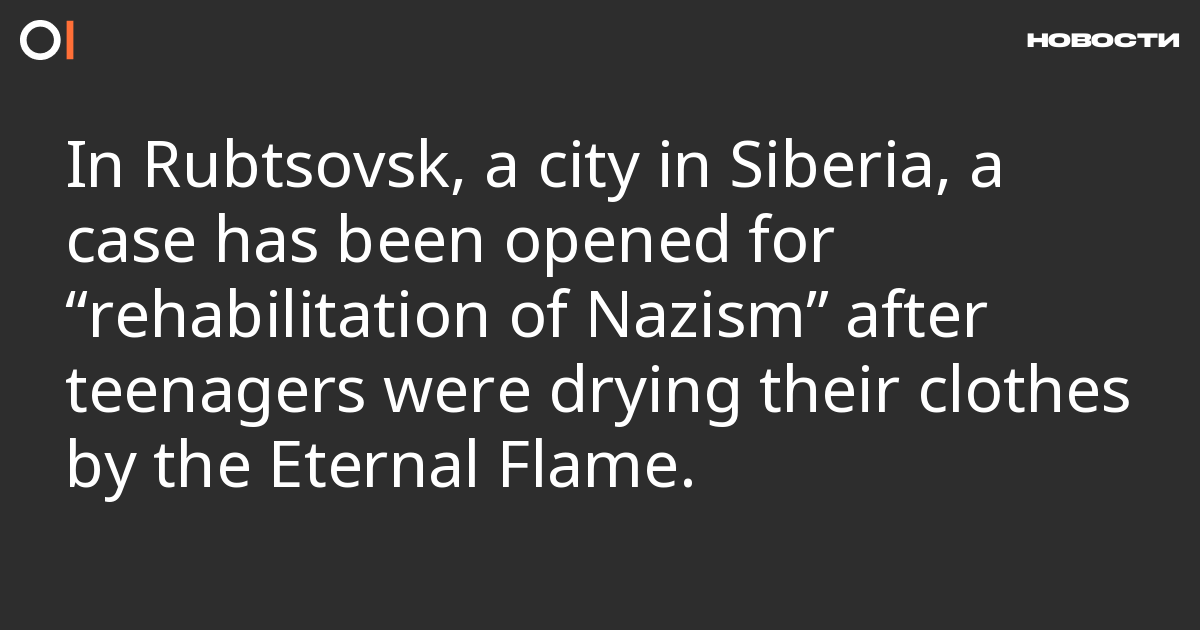 In Rubtsovsk, Altai Krai, a criminal case has been opened against a group of individuals for desecrating symbols of military glory (part 4, article 354.1 of the Criminal Code) after a video appeared showing three teenagers drying clothes by the Eternal Flame. The local Investigative Committee reported this.