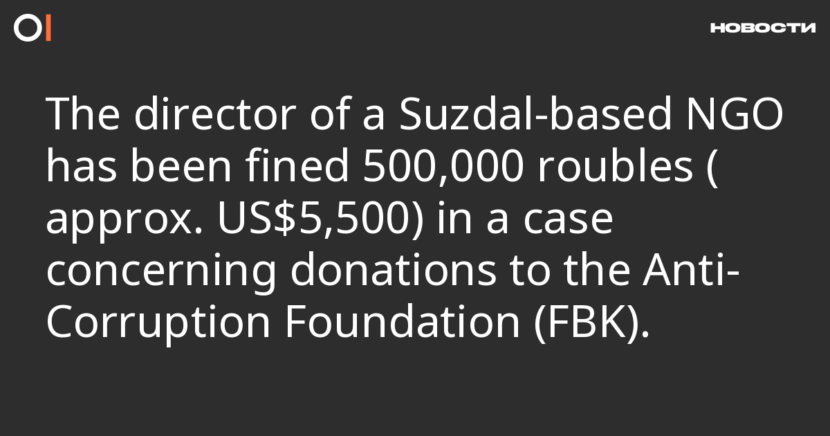 The head of the Suzdal Initiative NGO and lawyer Nikita Demyanov has been fined 500,000 roubles (approx. US$5,500) in a case concerning donations to the Anti-Corruption Foundation (FBK). This was reported by the news outlet Chesnok, citing the FSB.