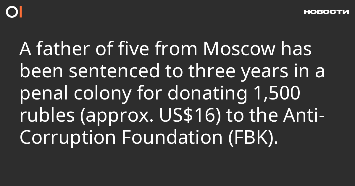 The Presnensky District Court of Moscow has sentenced Dmitry Marsov, a father of five, to three years in a penal colony on charges of financing an extremist organisation (part 1 of article 282.3 of the Criminal Code). His lawyer from OVD-Info reported this.