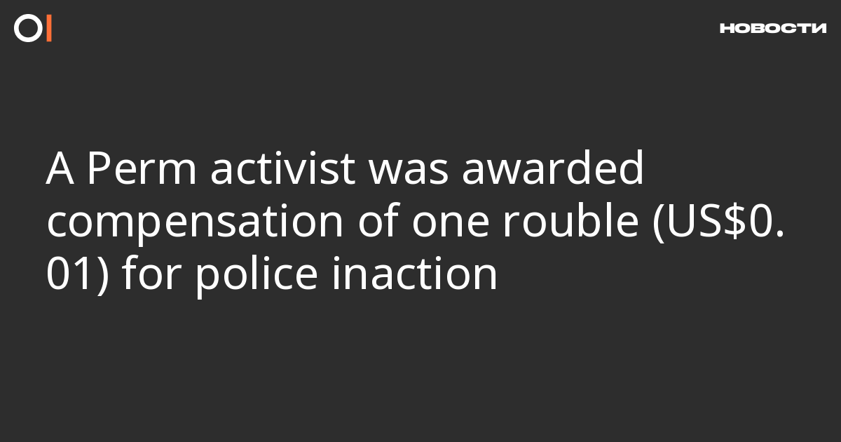 The court awarded Perm opposition activist Konstantin Okunev compensation of one rouble (US$0.01) for police inaction in a criminal defamation case against him. This was reported by “Perm 36.6.”
