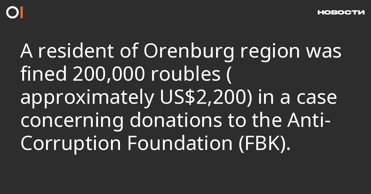 The Orenburg District Court has fined a 48-year-old resident of Podgorodnya Pokrovka village 200,000 roubles (approximately US$2,200) in a case concerning the financing of extremist activities (part 1 of article 282.3 of the Criminal Code). The court’s press service reported this.