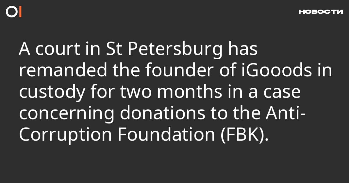 The Petrogradsky District Court in St Petersburg has remanded Grigory Kunis, founder of the iGooods grocery delivery service, in custody for two months in a remand centre. This was reported by the St Petersburg courts' press service.
