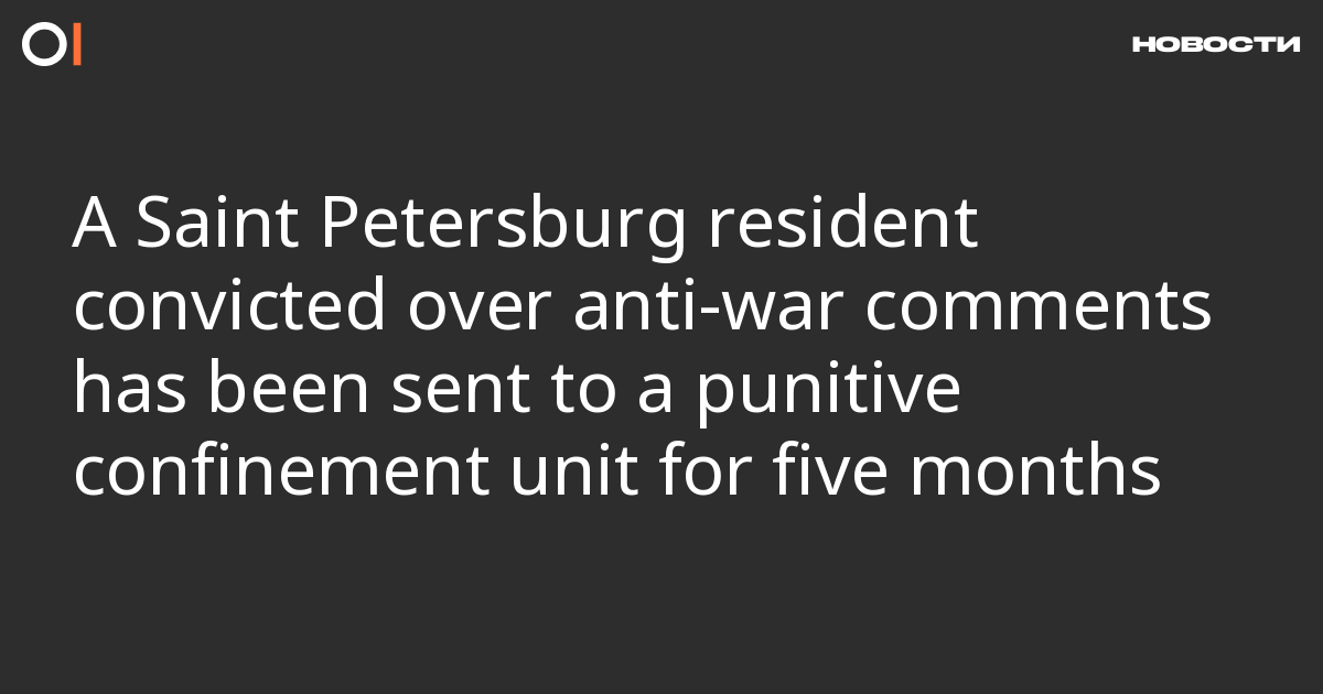 Oleg Belousov, a Saint Petersburg resident convicted over anti-war comments, has been sent to a punitive confinement unit (PKT) for five months. He reported this himself in a letter seen by OVD-Info.