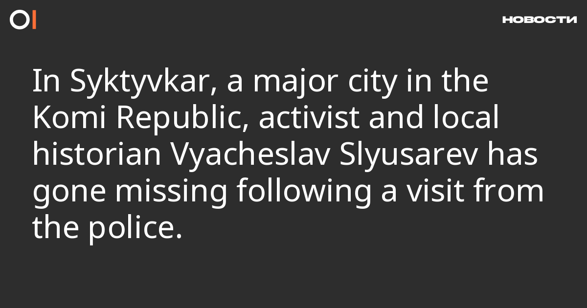In Syktyvkar, a major city in the Komi Republic, local historian and activist Vyacheslav Slyusarev has stopped communicating after a morning visit from law enforcement. This was reported by Novaya Gazeta, citing Slyusarev’s close contacts.