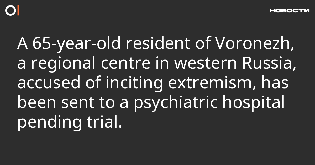Yury Avsenyev, a 65-year-old resident of Voronezh, a regional centre in western Russia, who is being prosecuted on charges of inciting extremism (Part 2, Article 280 of the Criminal Code), has been sent to a psychiatric hospital pending trial. This was reported by “Slovo Zashchite” (“Word in Defence”).