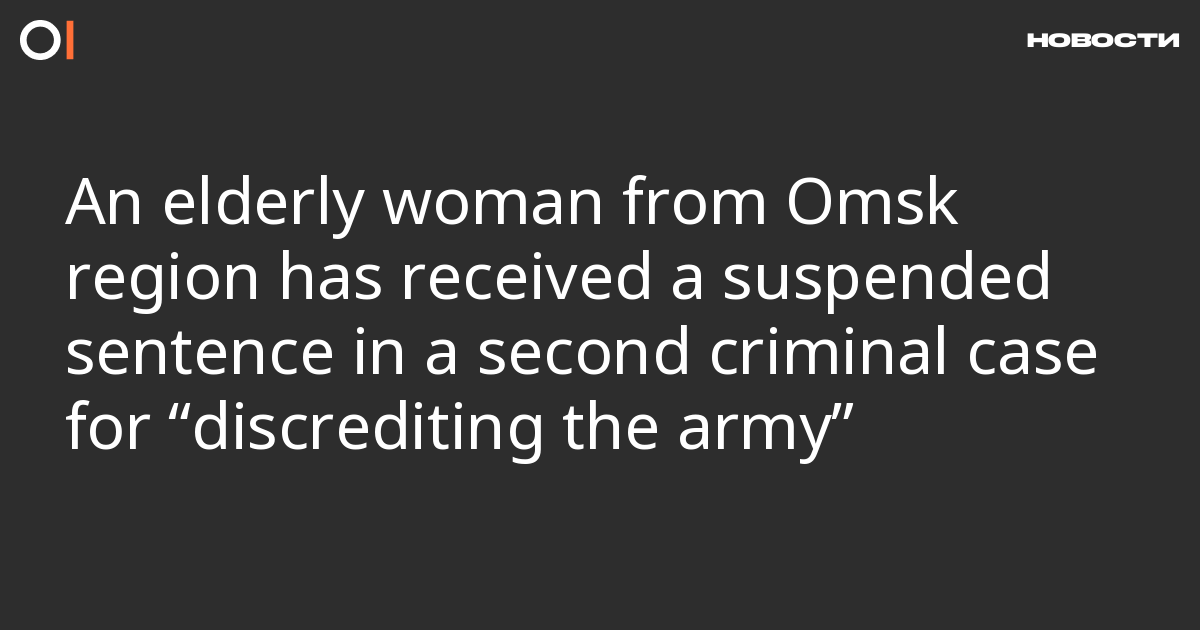 The Azovsky District Court in Omsk region has sentenced 71-year-old Anastasia Gordienko to two years’ suspended imprisonment in a second criminal case for “discrediting the army” (Part 1, Article 280.3 of the Criminal Code), her OVD-Info lawyer Andrey Ognev has told us.