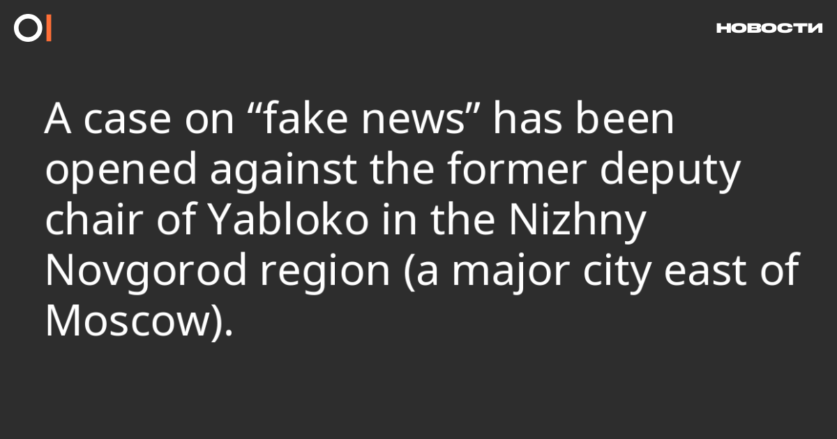 A criminal case on “military fake news” (Article 207.3 of the Russian Criminal Code) has been opened against Alexey Sadomovsky, the former deputy chair of the Yabloko party’s branch in the Nizhny Novgorod region, a major city east of Moscow. This was reported by “7×7—Horizontal Russia.”