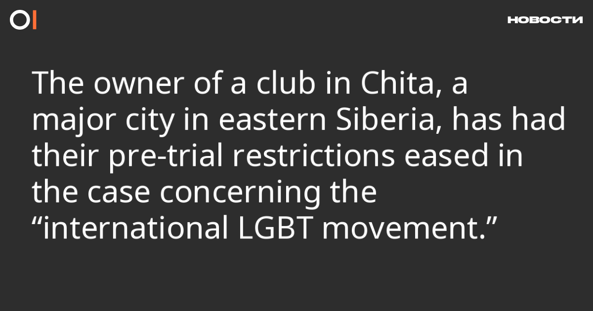 The 22-year-old owner of “Tochka,” a club in Chita, a major city in eastern Siberia, who is accused of involvement in the non-existent “International LGBT Movement,” has had her house arrest replaced with restrictions on certain activities, reports “Chita.ru.” This was shared with journalists by the press office of the Ingodinsky District Court.