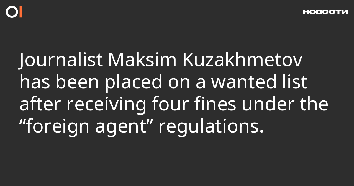 The Ministry of Internal Affairs has placed St Petersburg journalist Maksim Kuzakhmetov on the federal wanted list. He has been fined four times under protocols for violating the “foreign agent” legislation. This was reported by Mediazona.