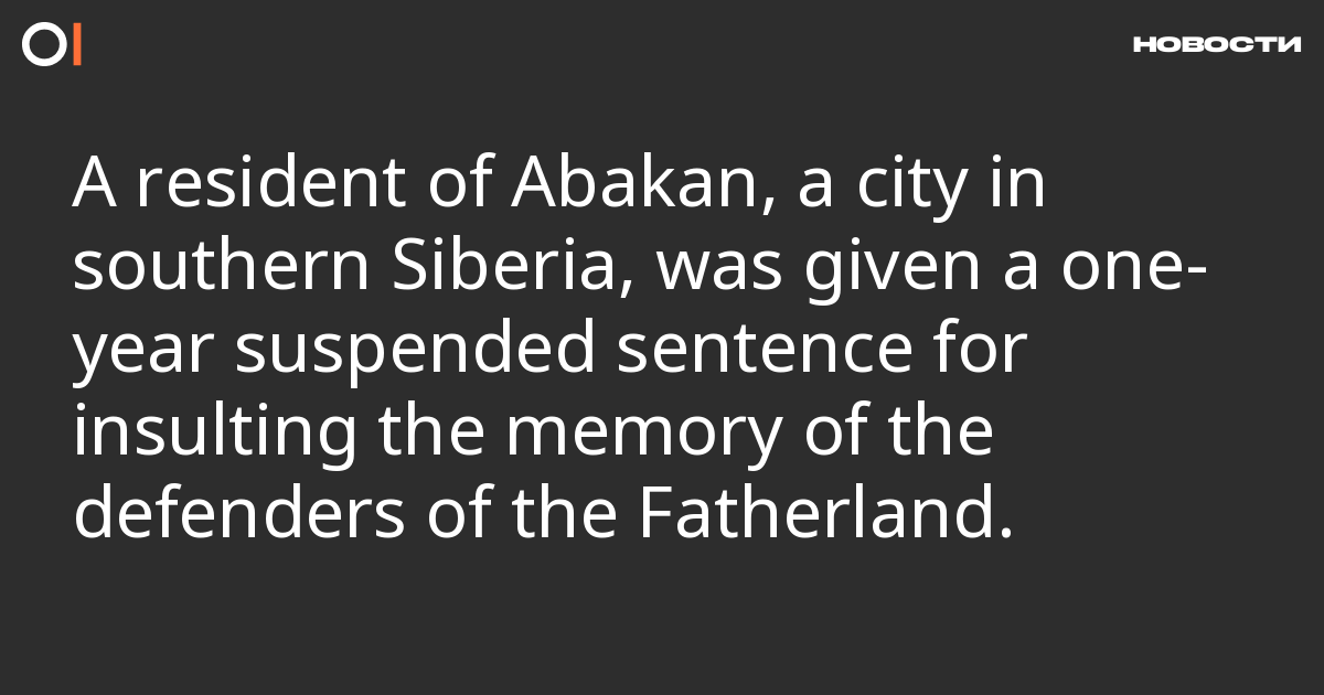 On 5 September, Denis Savostyanov, a 49-year-old resident of Abakan, the capital of Khakassia in southern Siberia, was given a suspended sentence of one year for “insulting the memory of defenders of the Fatherland” (Part 4, Article 354.1 of the Criminal Code). This was reported by the regional Investigative Committee.