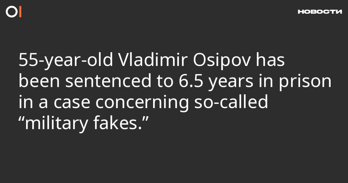 55-year-old Vladimir Osipov has been sentenced to six and a half years in a penal colony on charges of spreading military “fakes.” SOTAvision reports about the verdict.