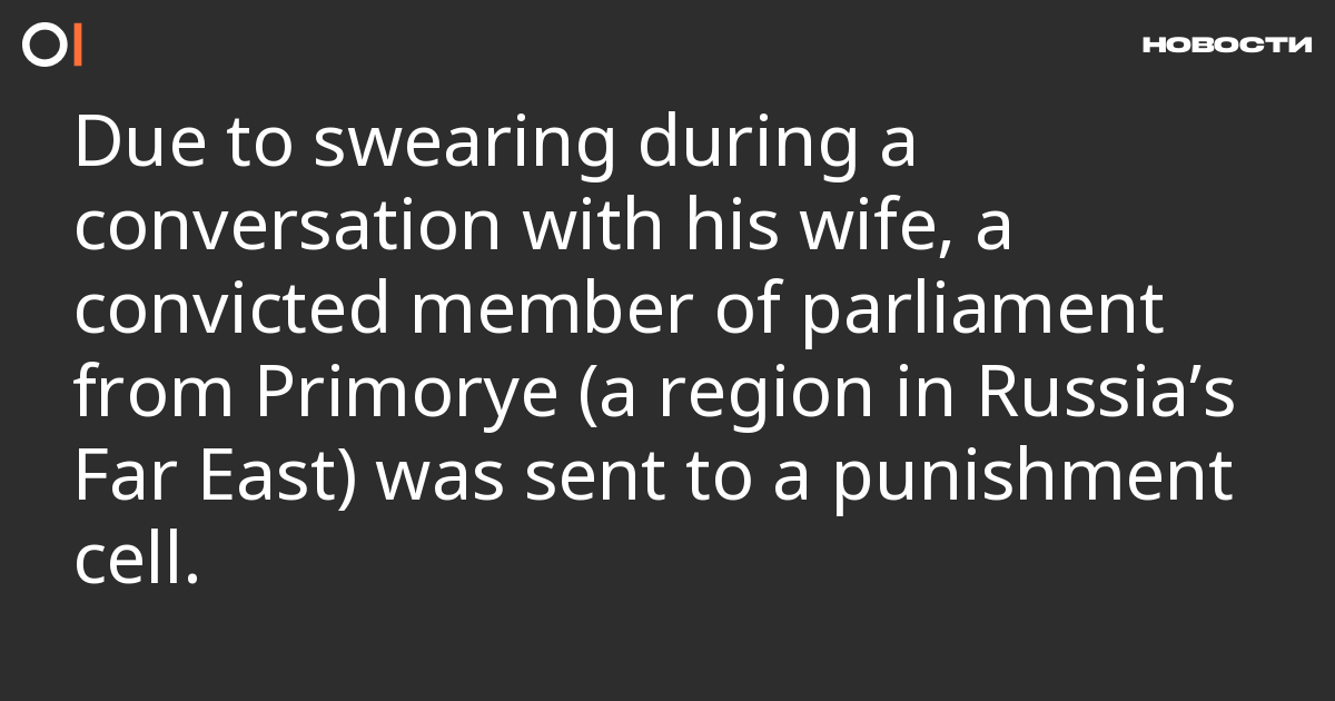 Artyom Samsonov, a member of the Legislative Assembly of Primorsky Krai from the Communist Party (CPRF) who is serving a sentence, has been given seven days in a punitive isolation cell for swearing during a conversation with his wife, reported his sister, who is also his lawyer.