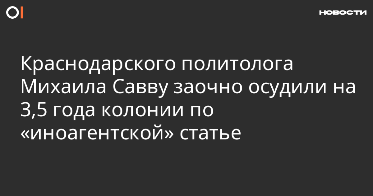 Советский районный суд Краснодара признал политолога виновным в уклонении от исполнения обязанностей «иноагента» (ч. 2 ст. 330.1 УК). Об этом ОВД-Инфо сообщили в суде.